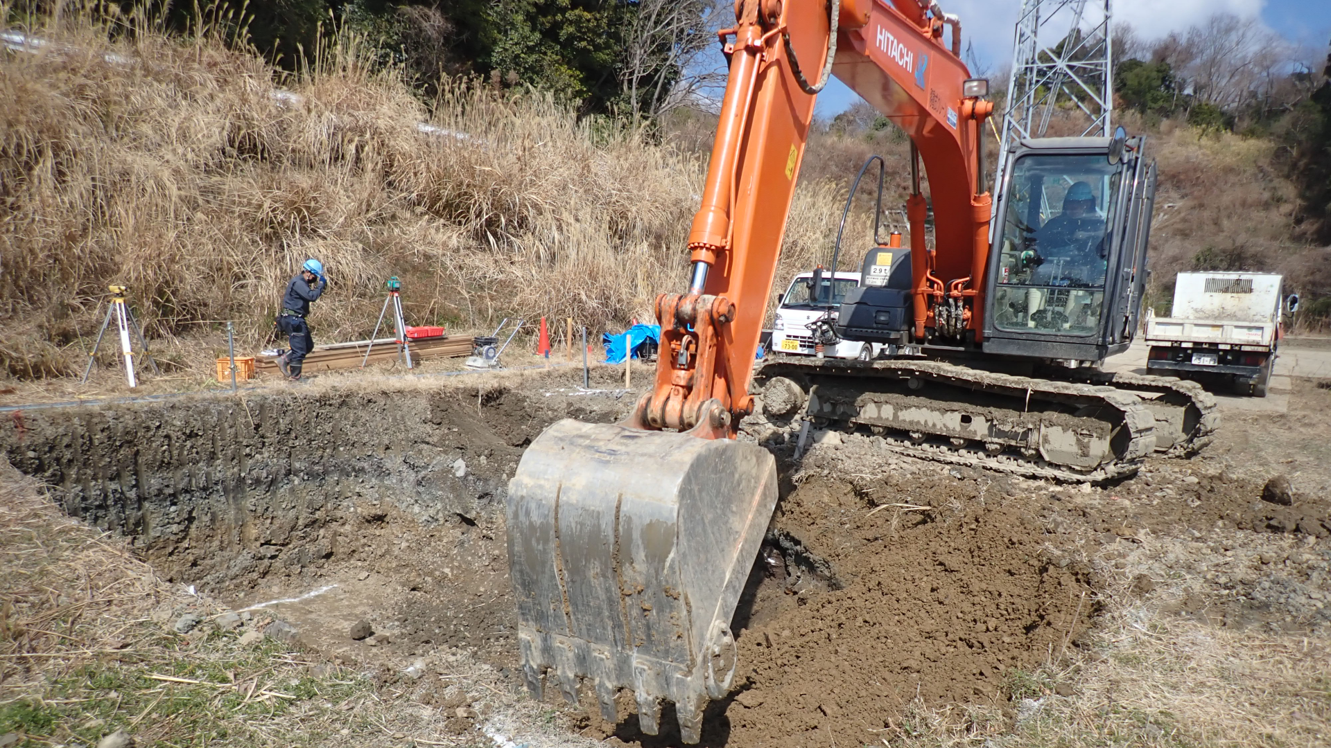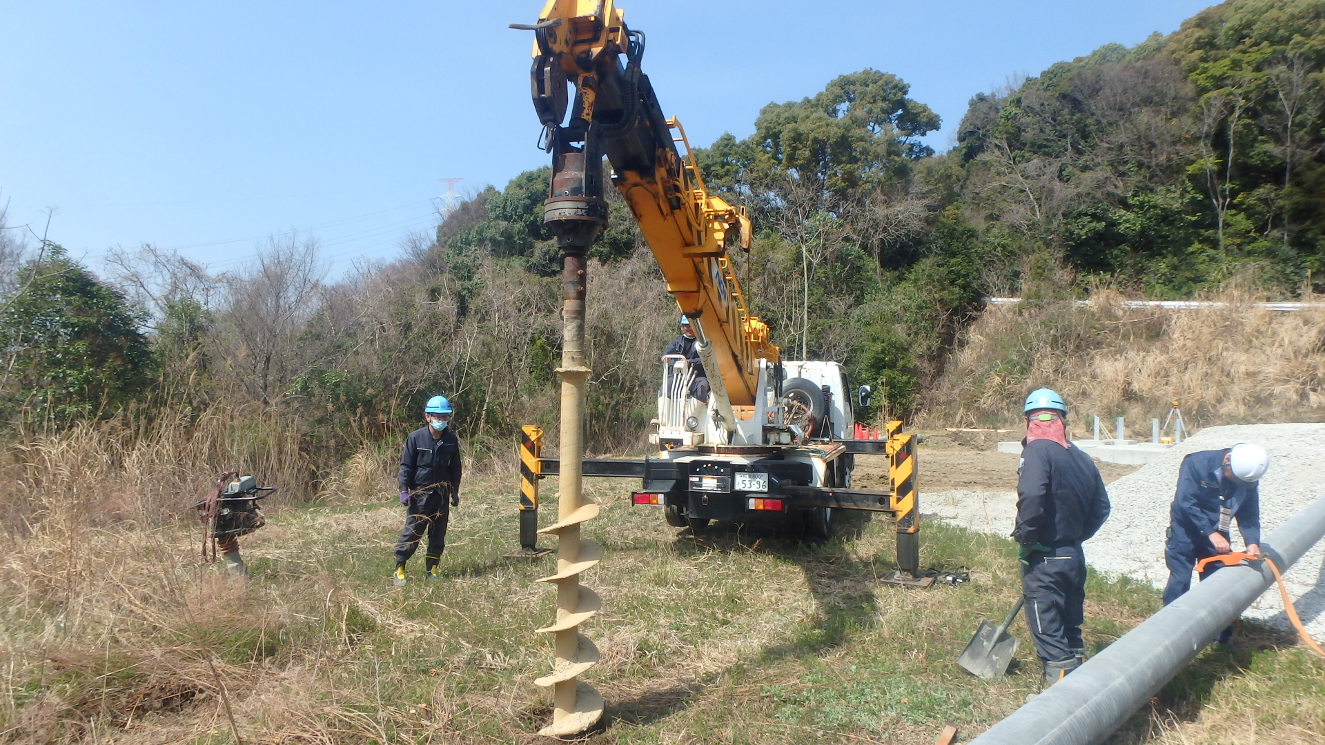 他社が手掛けないような難しい建柱工事や土木工事にも対応できる技術力。