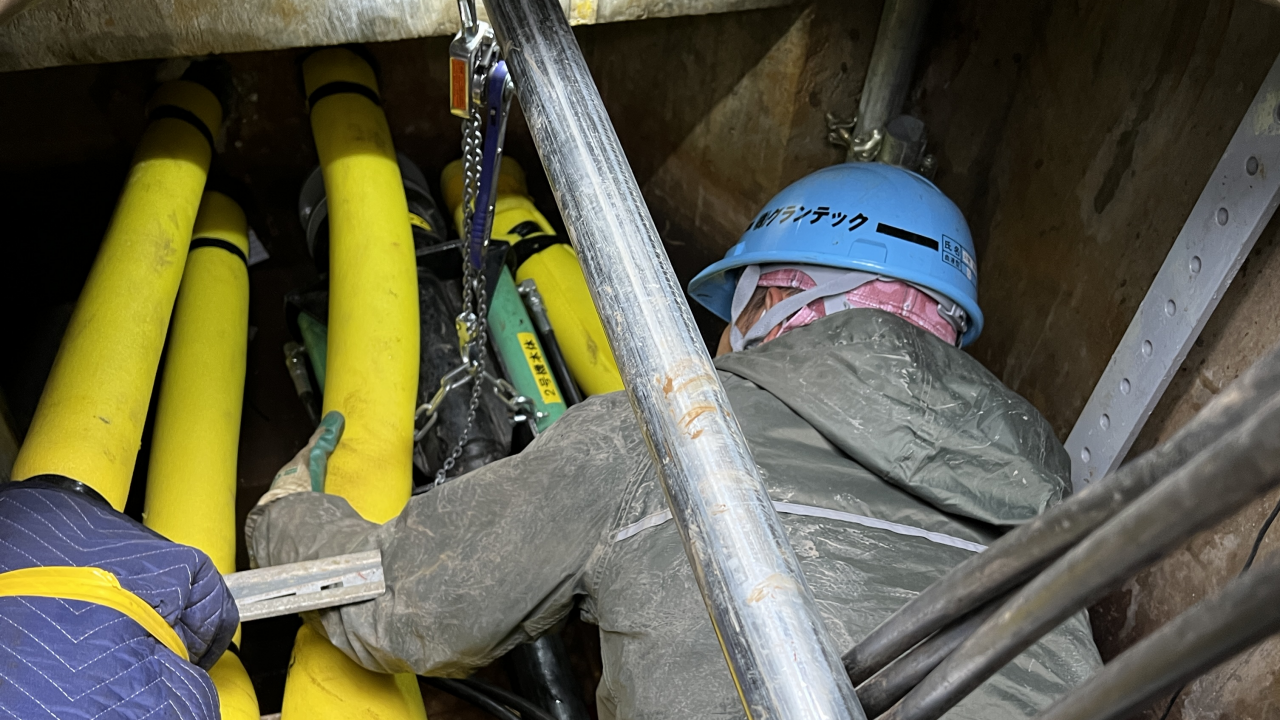 ケーブル引抜装置による地下不動ケーブルの引抜き(甲賀市)