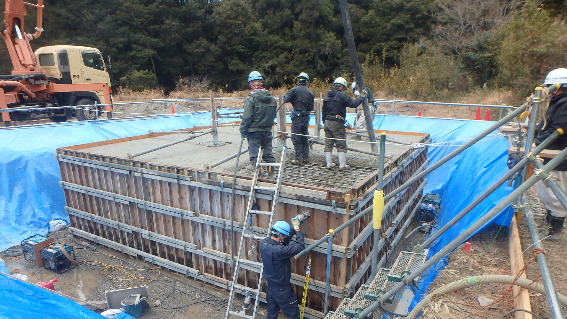 ライナープレート立坑掘削を伴うアンテナ柱建柱工事