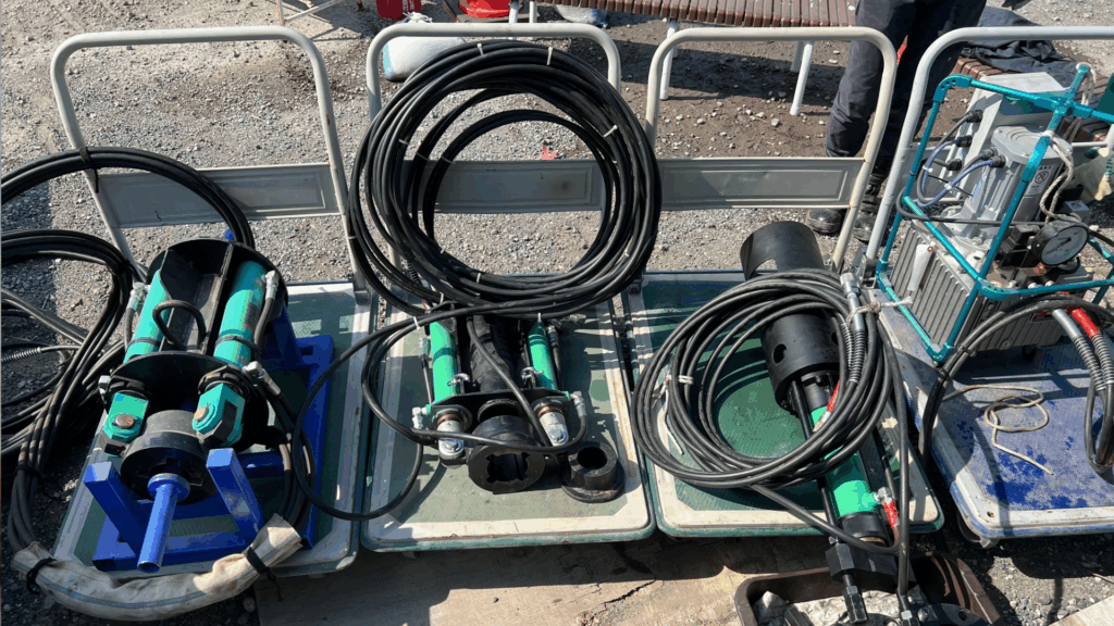 このような想定外の事態には、弊社が独自に開発した「ケーブル引抜装置」を用いて対応しています。