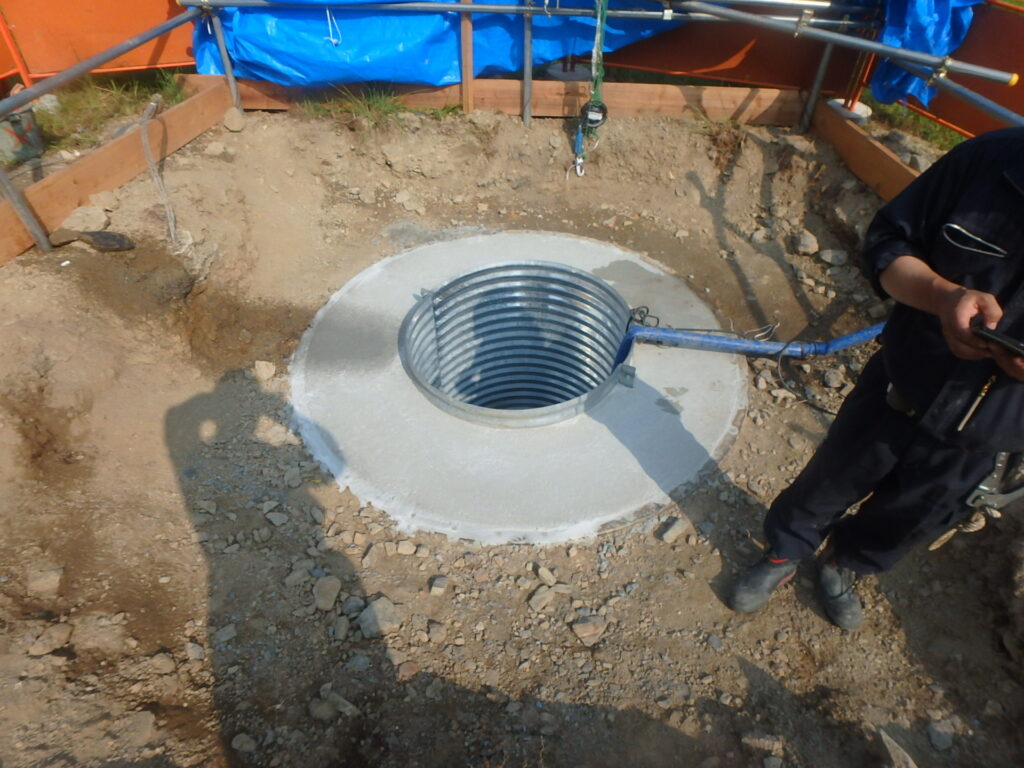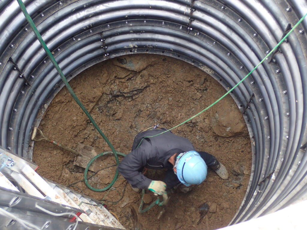 今回の底部は岩盤層で非常に掘りにくい状態でした。