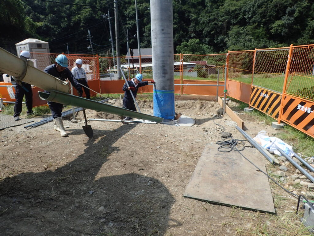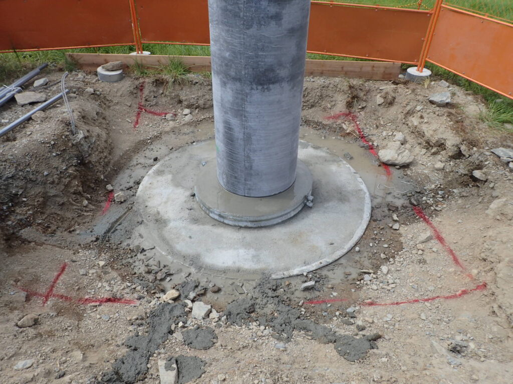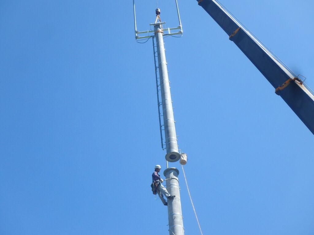 ライナープレート立坑掘削を行うことでアンテナ柱の根入れ長を確保し、建柱を行いました。