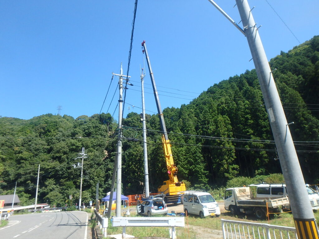 山中の電波状態を改善するためにアンテナ柱を建てます。