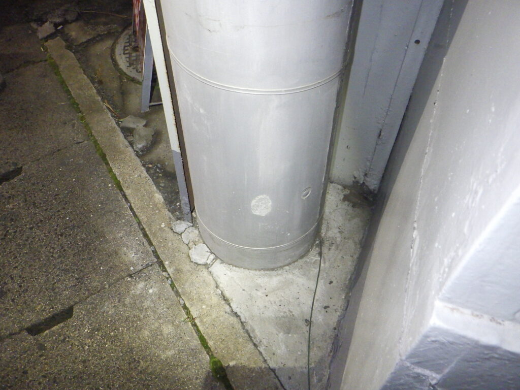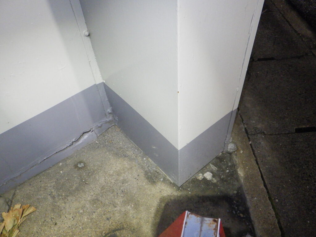 対象の電柱は三方が壁で囲われており、目視することが出来ません。また、お店の方から、設備に損害が出ないようにご指導をいただいておりました。