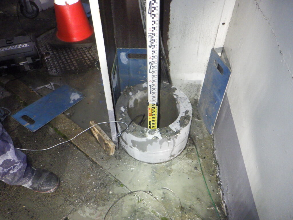 京都市内、国道沿い(夜間工事)、ガソリンスタンド敷地内、マンション多数隣接地域、通常の建て替えであれば床土間をハツリ込み、抜柱・建て替えを試みますが様々な条件が重なり、既設柱切断、電柱IN工法が最適との結論になり、当社にて工事のご用命をいただきました。