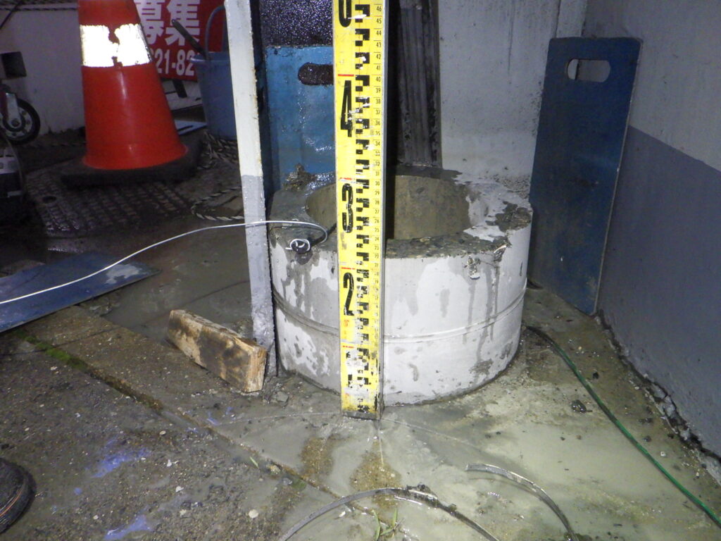 新たに鋼管柱を挿入、無収縮モルタル施工。