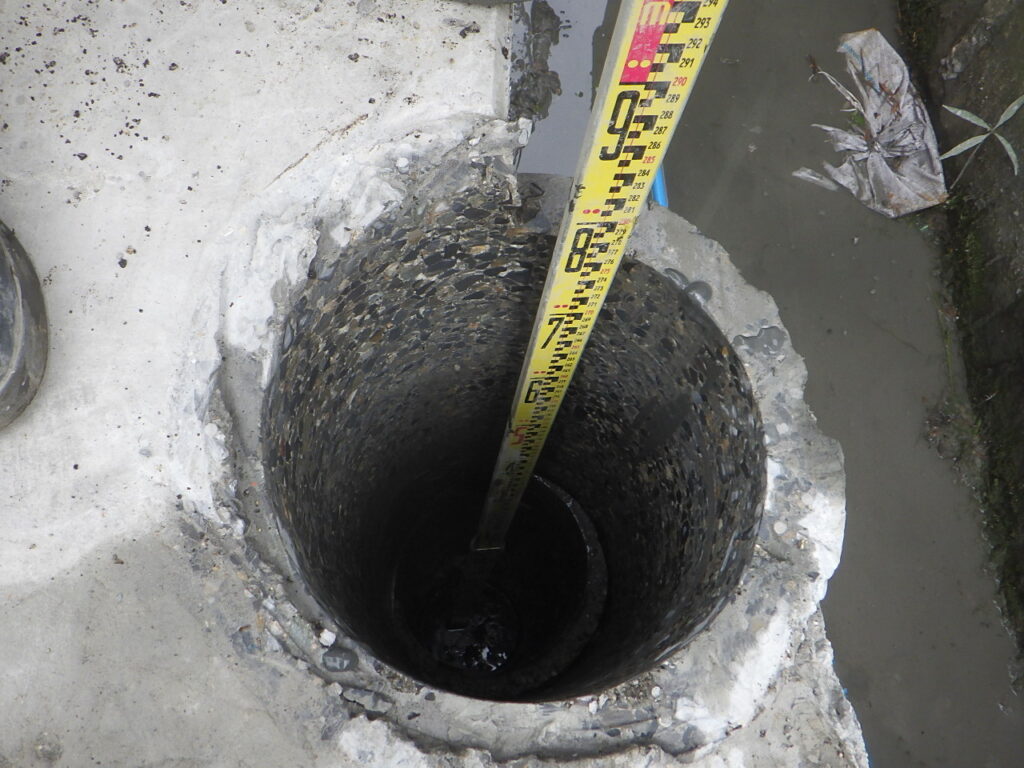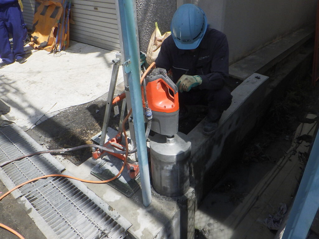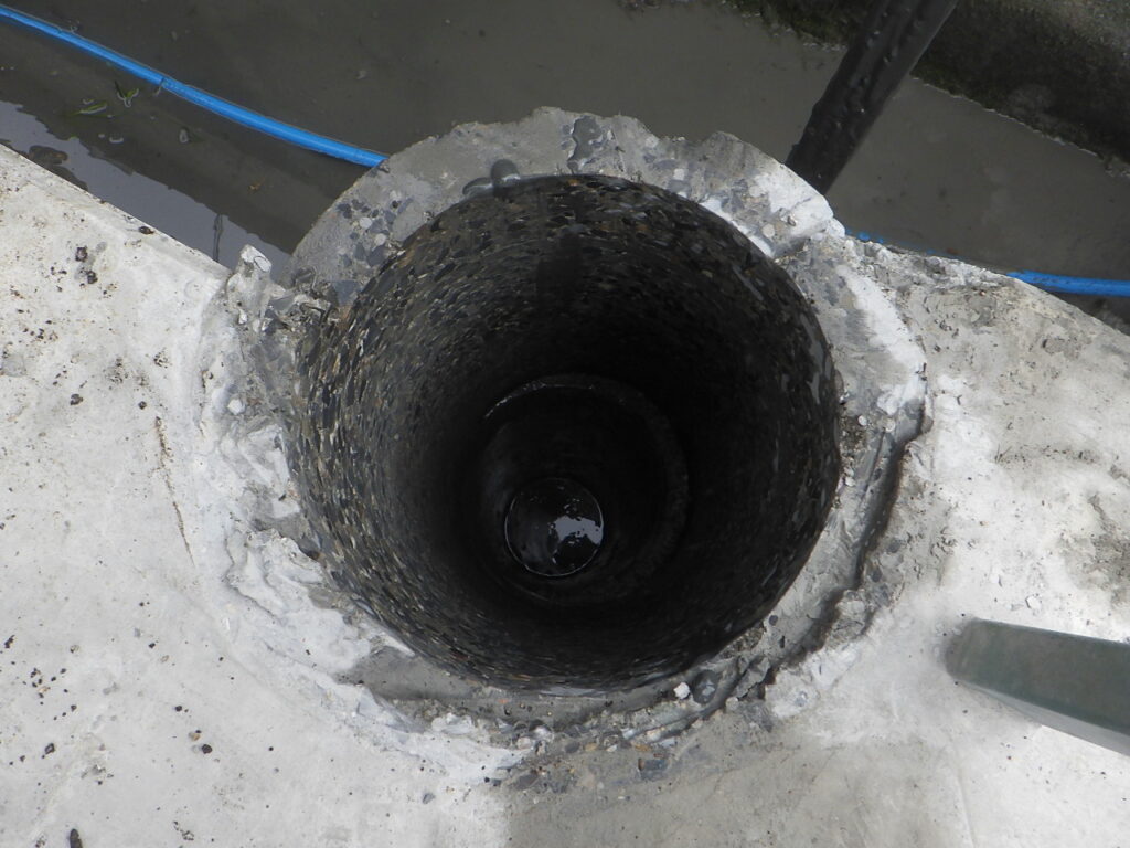 コア開削後は内部の深度を確認し、鋼管柱が適正な根入れ深さとなるまで