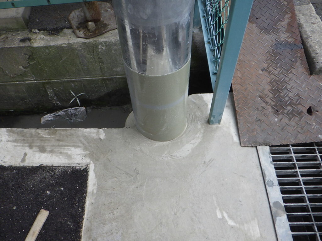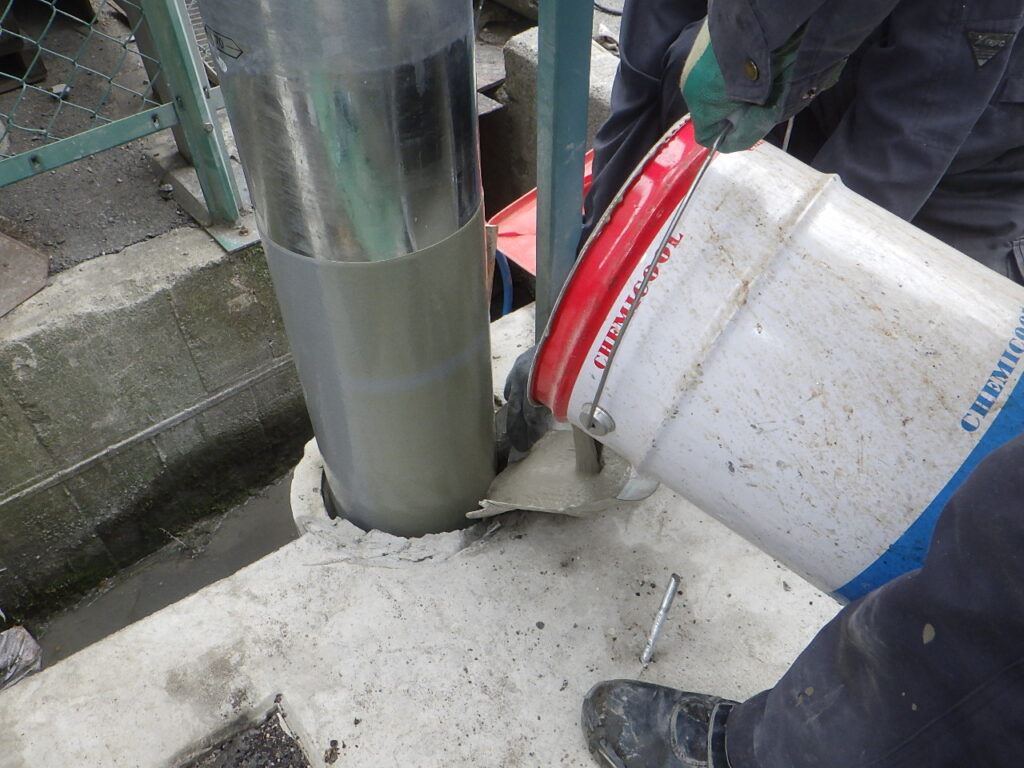 コア開削した既設電柱に鋼管柱を建て込み、速乾性の無収縮モルタルを充填して硬化させることで鋼管柱を確実に固定します。